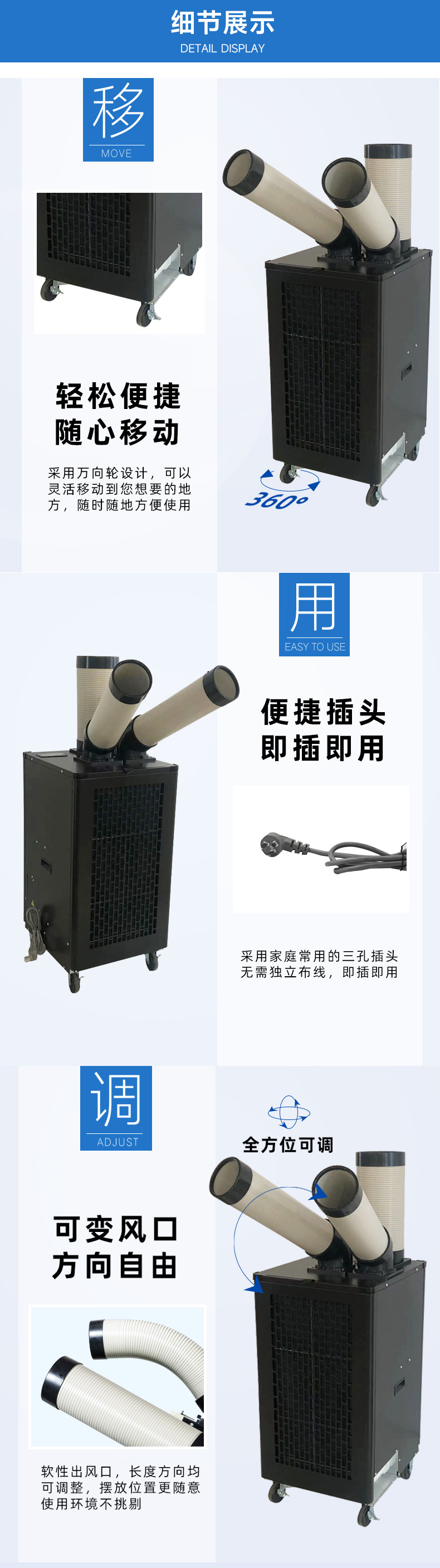 6、兩個冷風口均可270度擺風,適用于3-5個崗位的降溫