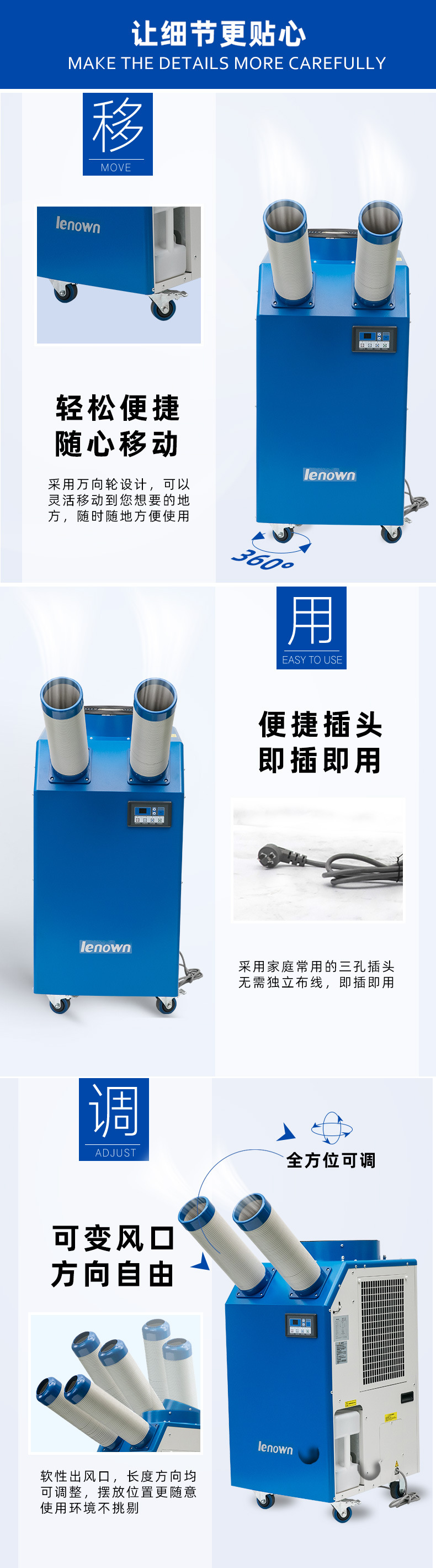 6、兩個冷風口均可270度擺風,適用于3-5個崗位的降溫